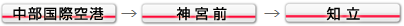 ❶ 「中部国際空港」から空港線/常滑線に乗り「神宮前」で下車